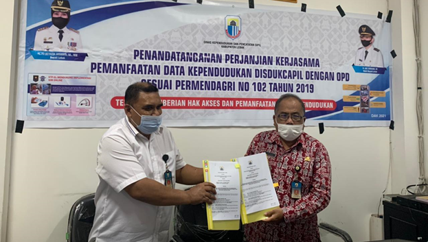 Dalam rangka hal tersebut, Dinas Kependudukan dan Pencatatan Sipil pada hari Kamis tanggal 24 Juni 2021 telah melakukan Penandatanganan Perjanjian Kerjasama Pemanfaatan Data Kependudukan dan Hak Akses antara Dinas Kependudukan dan Pencatatan Sipil Kabupaten Lebak dengan Dinas Sosial Kabupaten Lebak serta dengan Dinas Pendidikan Kabupaten Lebak yang dilaksanakan di ruangan Kepala Dinas Kependudukan dan Pencatatan Sipil Kabupaten Lebak.